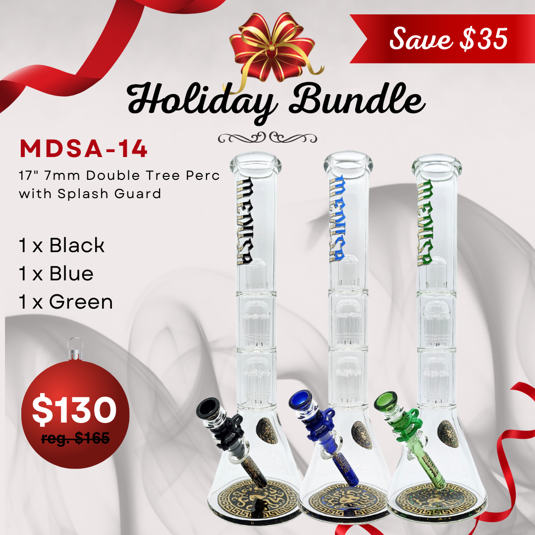 17" - 7mm Medusa Glass Double Tree Perc With Splash Guard