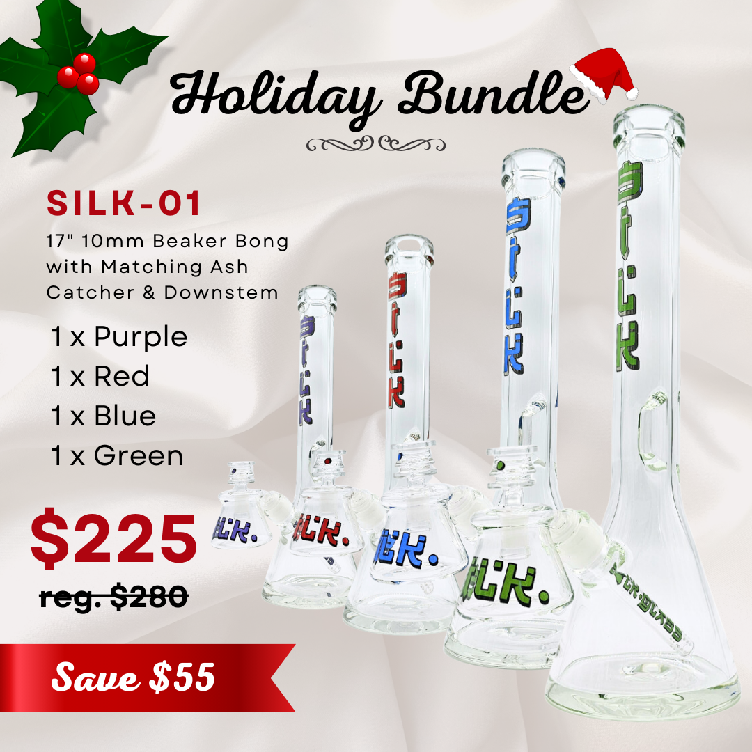 17" Silk Straight Tube Bong with Triple Inline Perc & Accessories