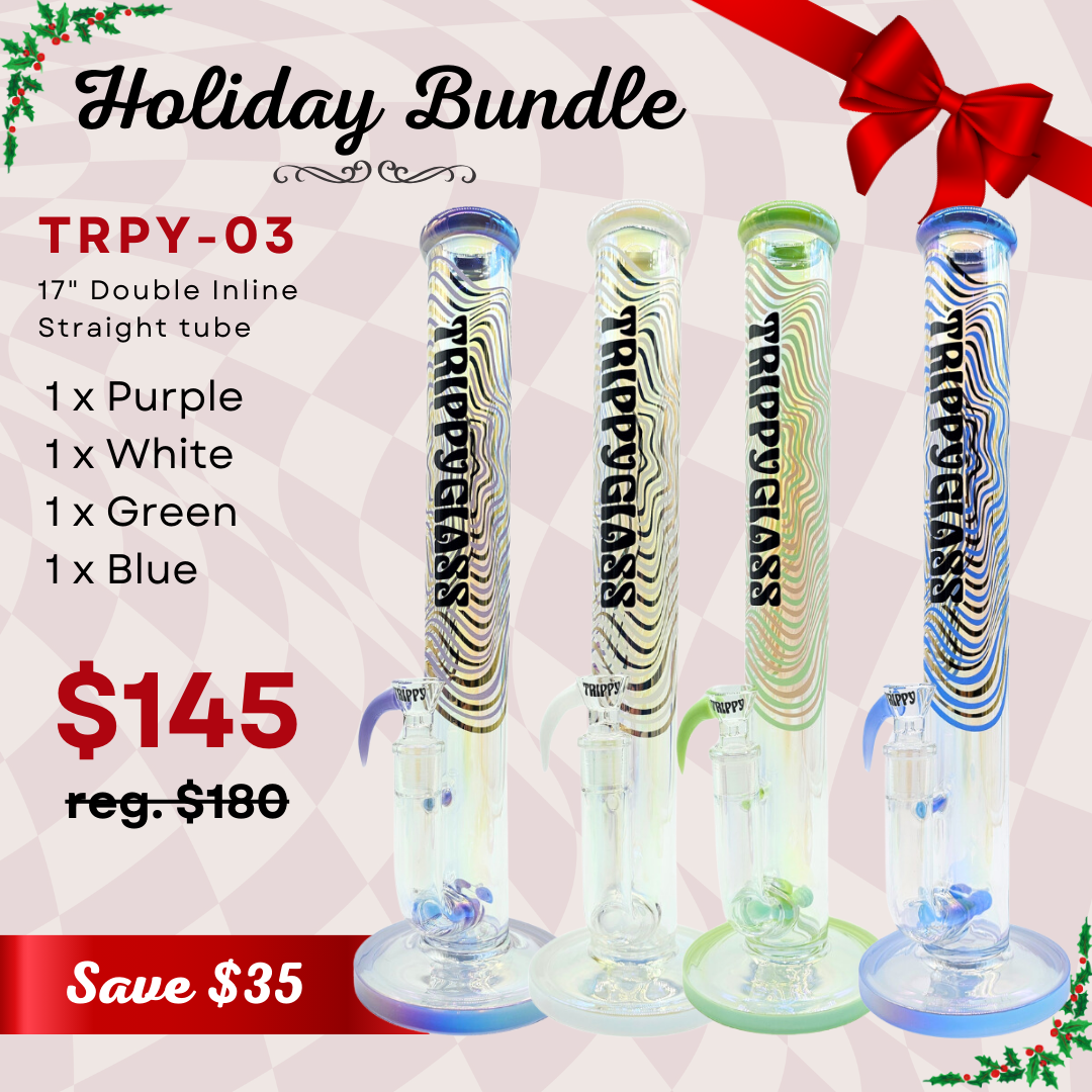 17" Holographic Double Inline Trippy Glass Straight Tube - 4 Colors