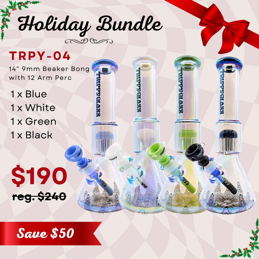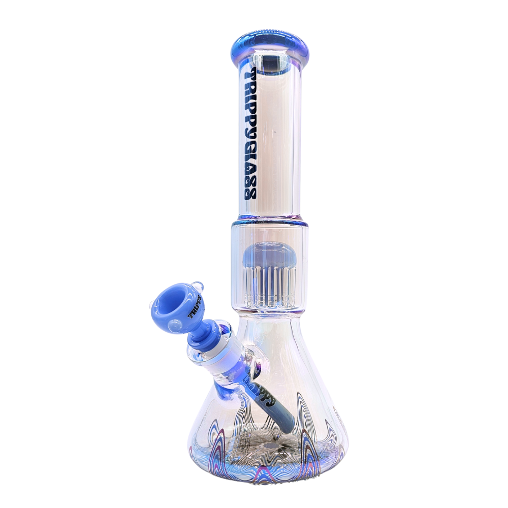 14" 9mm Holographic Trippy Glass Beaker Bong w/ 12 Arm Perc - 4 Colors