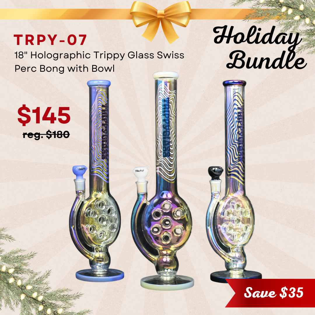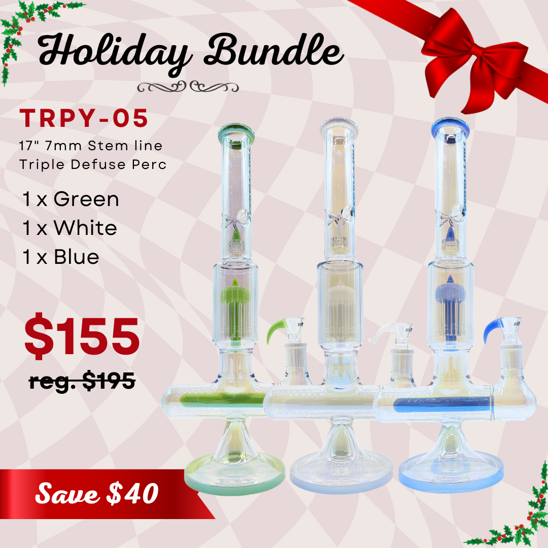 17" 7mm Trippy Holographic Stemline Triple Defused Perc - 3 Colors